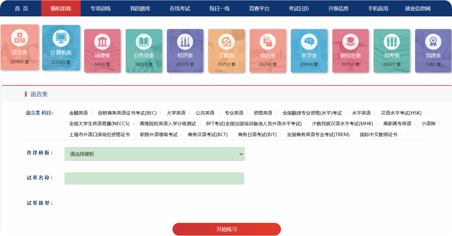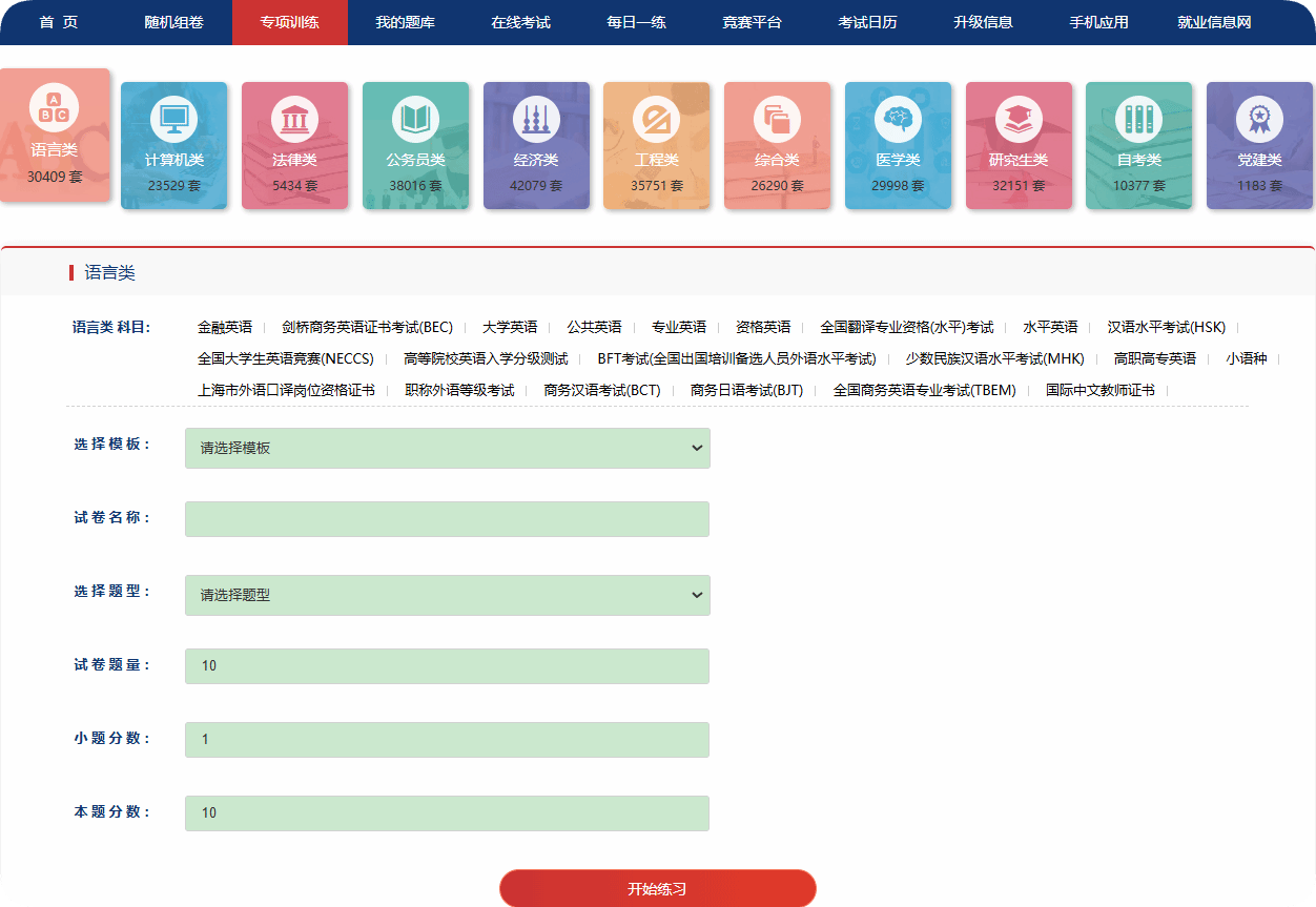 选择试卷→开始做题