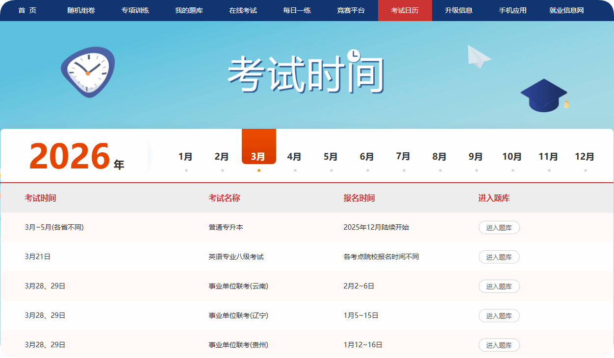考试日历:热门考期清晰标注,备考规划精准把控!