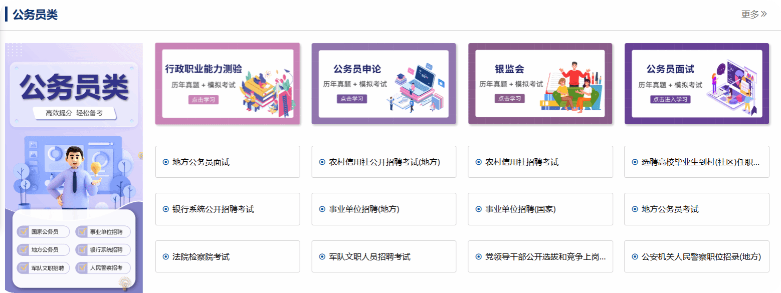 公务员类:公考事考全收录,上岸之路更顺畅!