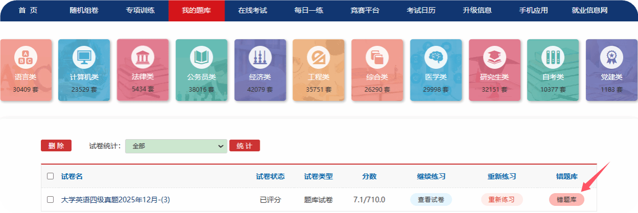 我的题库:试卷存档一键保存,反复练习巩固提升!