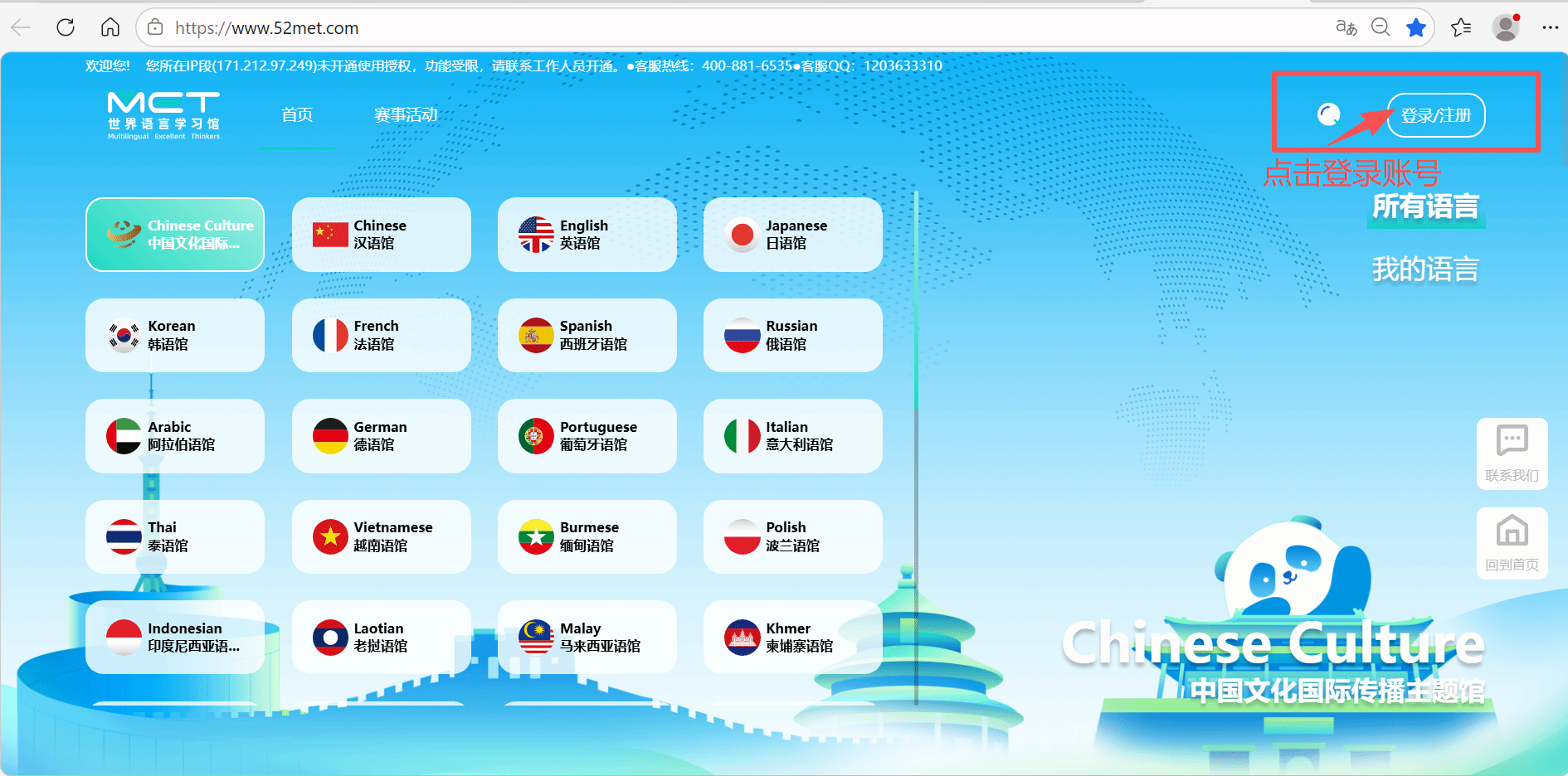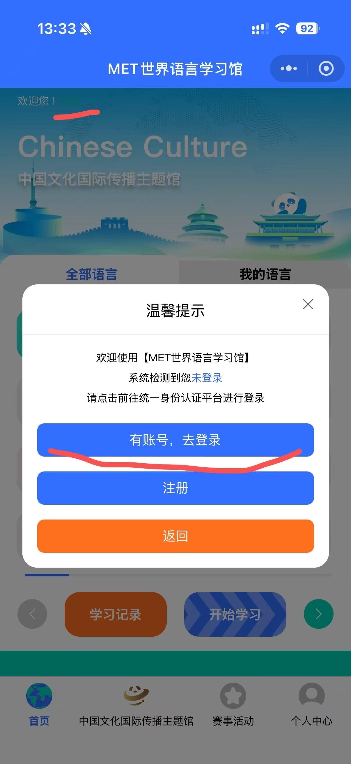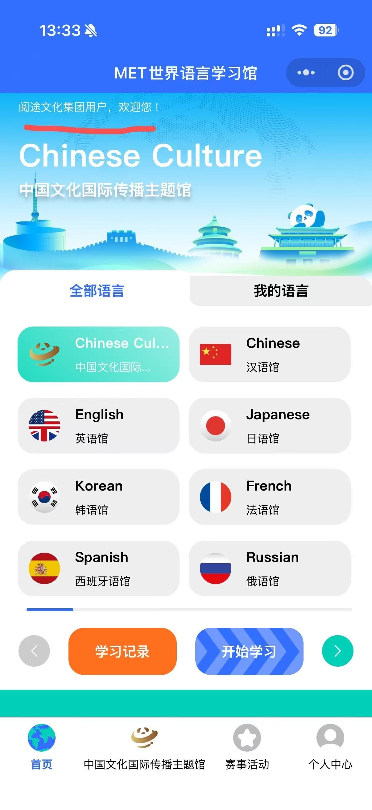 移动端访问:微信小程序搜索「MET世界语言学习馆」,使用个人账号登录访问