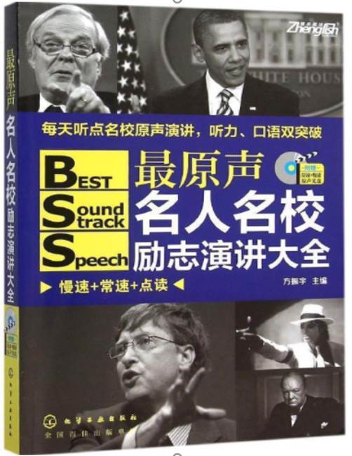 推荐理由: 本书收录了20余篇英语演讲, 演讲者来自政治、经济、文化等各个领域。精选出的这些演讲名篇题材涉猎广泛、风格迥异, 有的气势恢宏, 意蕴精深 ; 有的轻松诙谐, 令人捧腹 ; 有的言辞恳切, 语重心长, 涵盖12所世界一流大学, 包括美国的哈佛、耶鲁, 英国的牛津, 还有中国的清华、北大等。借音频听演讲, 感受现场气氛, 聆听名人之声, 感悟世界级人物送给大学毕业生的成功忠告。同时, 你可以借此机会跟世界顶级人物学习口语, 听他们的声音, 模仿地道的原汁原味的腔调。