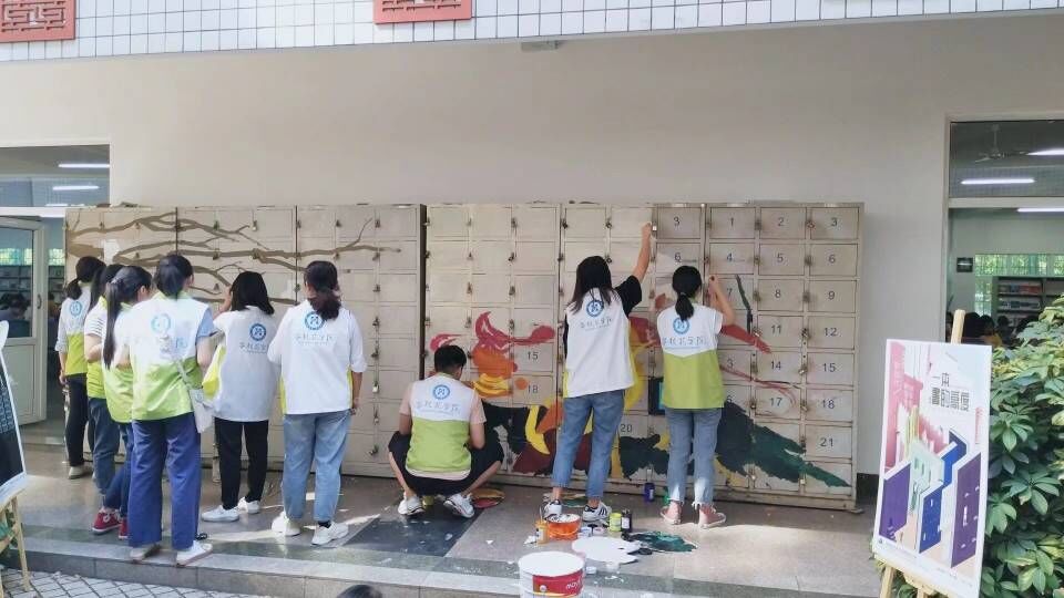 4月20、21日,艺术学院学生志愿者团队利用周末休息时间对位于图书馆一楼的240个存包柜柜面进行整体艺术美化,艺术画以竹兰梅菊为图,寓意文人君子身上所带的美好品德。接下来,艺术学院学生志愿者还将对位于图书馆四楼和五楼的存包柜柜面进行整体艺术美化。四楼图案以岁寒三友中的松树为图,象征坚贞不屈的英雄气概,五楼图案以荷花为图案,蕴喻攀大学子“出泥而不染濯清涟而不妖”的高尚品格。