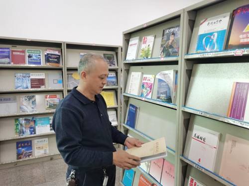 整理、上架书籍,清理、分类报纸图书和报刊,选购、订购图书,打扫书架卫生……这些都是他长期工作的场景。42年前他成为图书管理员,37年前他成为攀枝花学院图书馆一员,从此投身为之奉献几十年的图书事业。他就是2021年被授予全国“高校图书馆榜样馆员”荣誉称号的我校图书馆研究馆员赵大志同志。