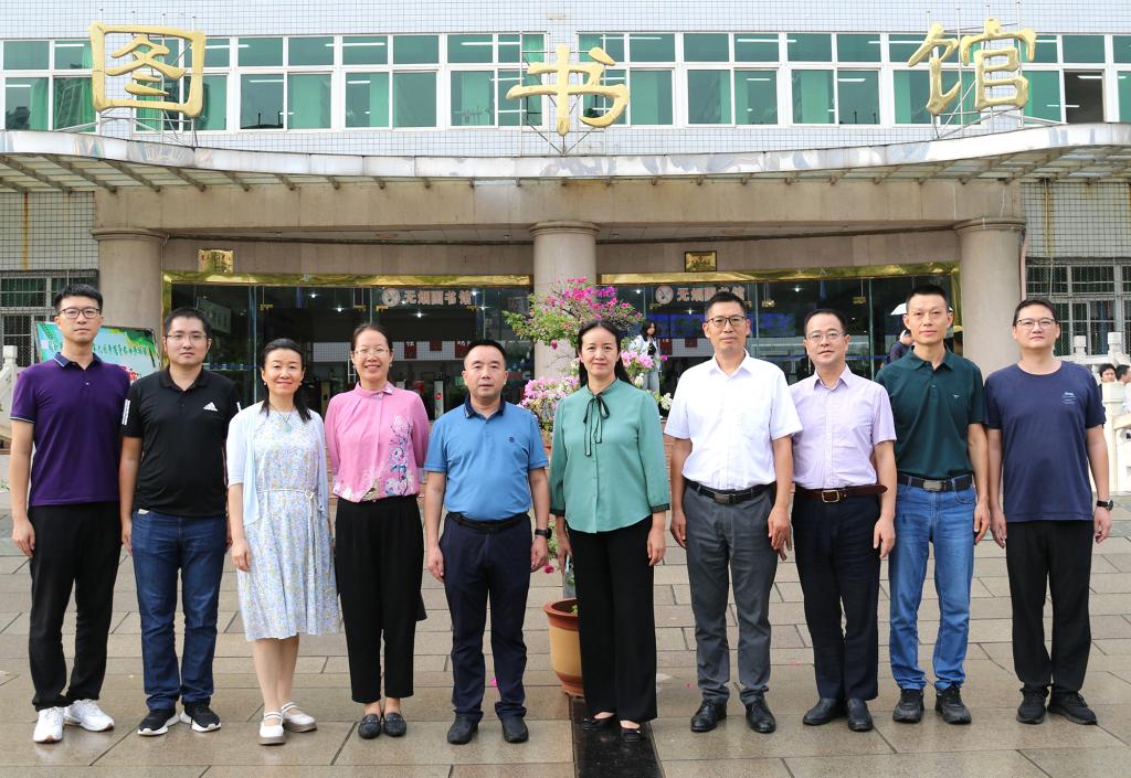 杨文慧一行参观了图书馆特色文献室、室外阅读区和清风苑,并合影留念。