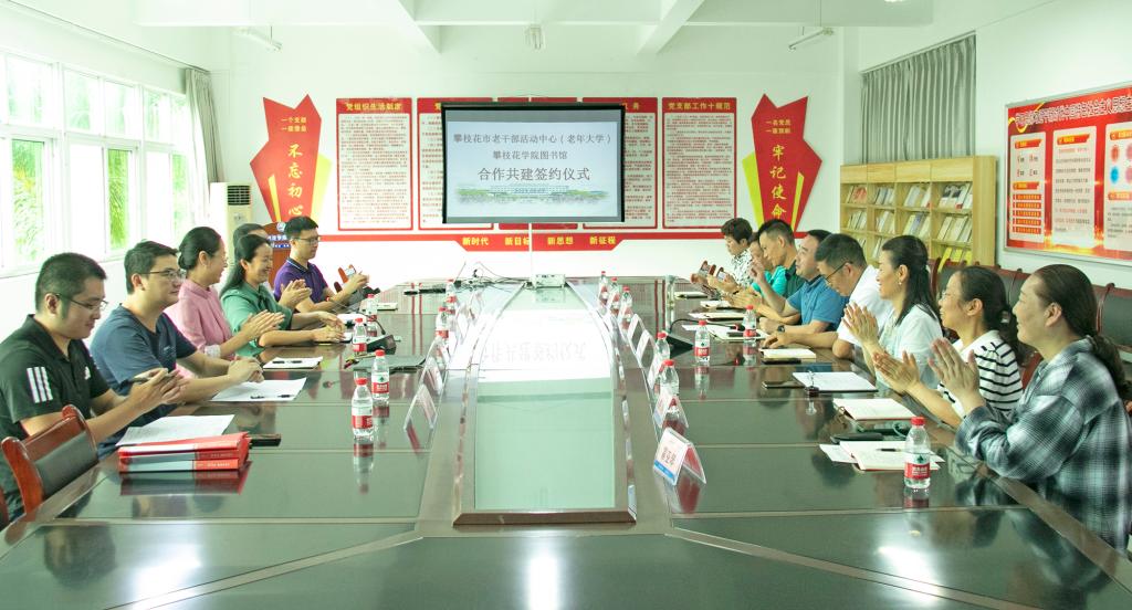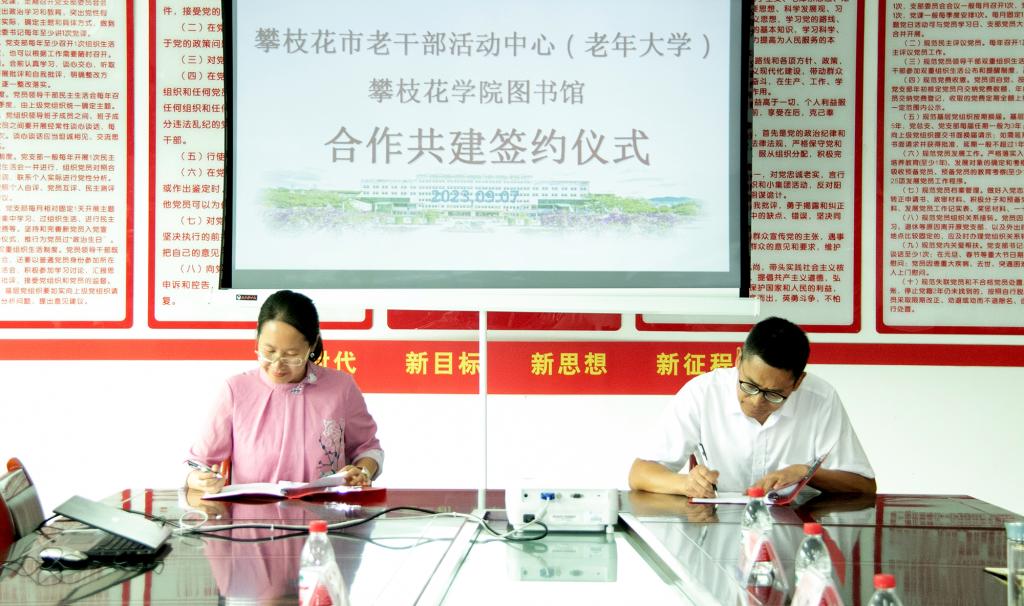图书馆持续巩固主题教育调研成果,于9月7日下午与市老干部活动中心(老年大学)正式签订合作共建协议。市委组织部副部长、老干部局局长杨文慧,老干部局副局长陈晓翔,市老干部活动中心(老年大学)主任(校长)吴晓颖、副主任(副校长)陈遥,攀枝花学院党委常委、组织部部长苏兴仁,图书馆馆长王欢、副馆长何中勇以及双方相关人员参加签约仪式。王欢主持仪式。
